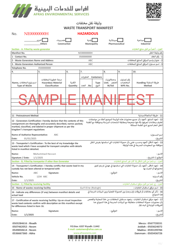 Note: QR is available on the top of the manifest for verification.